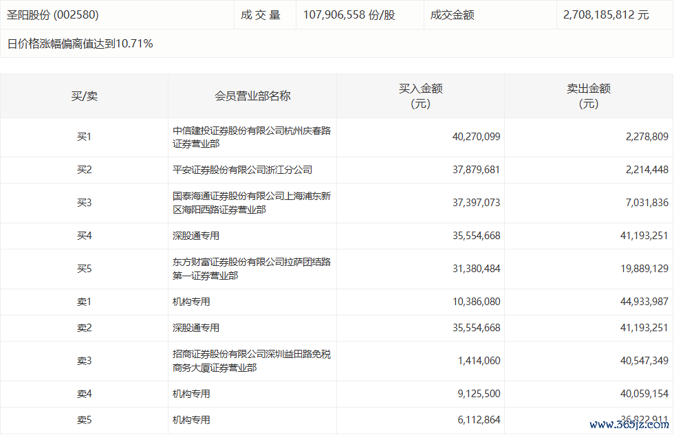 圣阳股份今日涨停,有3家机构专用席位净卖出9619.16万元圣阳股份今日涨停,有3家机构专用席位净卖出9619.16万元