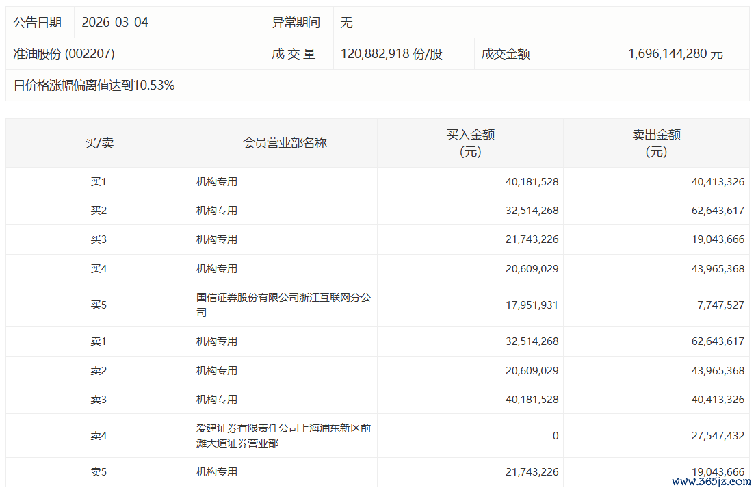 准油股份今日涨停,有3家机构专用席位净卖出5371.75万元准油股份今日涨停,有3家机构专用席位净卖出5371.75万元