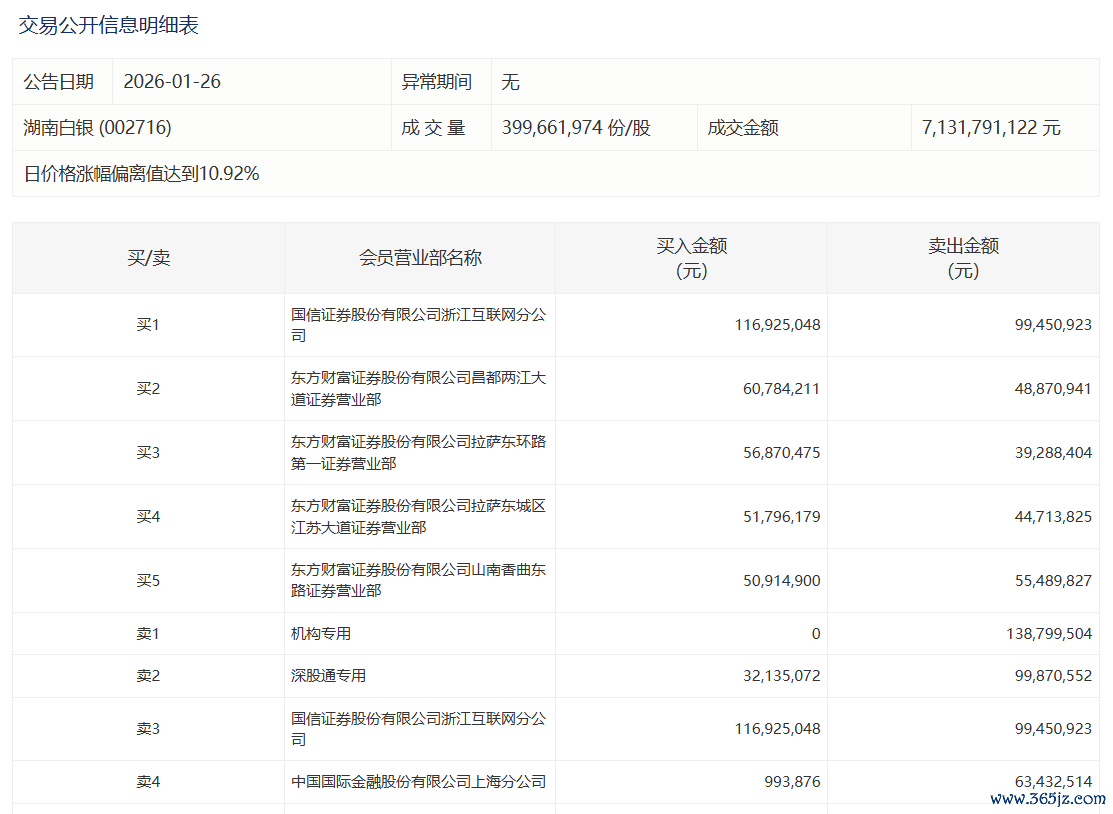 湖南白银今日涨停,有1家机构专用席位净卖出1.39亿元湖南白银今日涨停,有1家机构专用席位净卖出1.39亿元